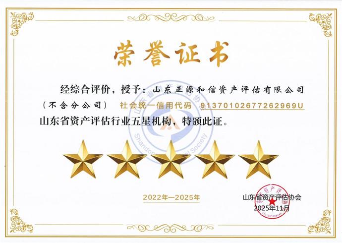 近日,山东省资产评估协会正式公布2022-2025年度全省资产评估机构综合评价结果,山东正源和信资产评估有限公司凭借过硬的专业实力、规范的执业水平和良好的行业口碑,斩获综合评价五星机构荣誉称号,这是对公司发展水平的权威认可,也是对全体员工专业坚守的高度肯定。